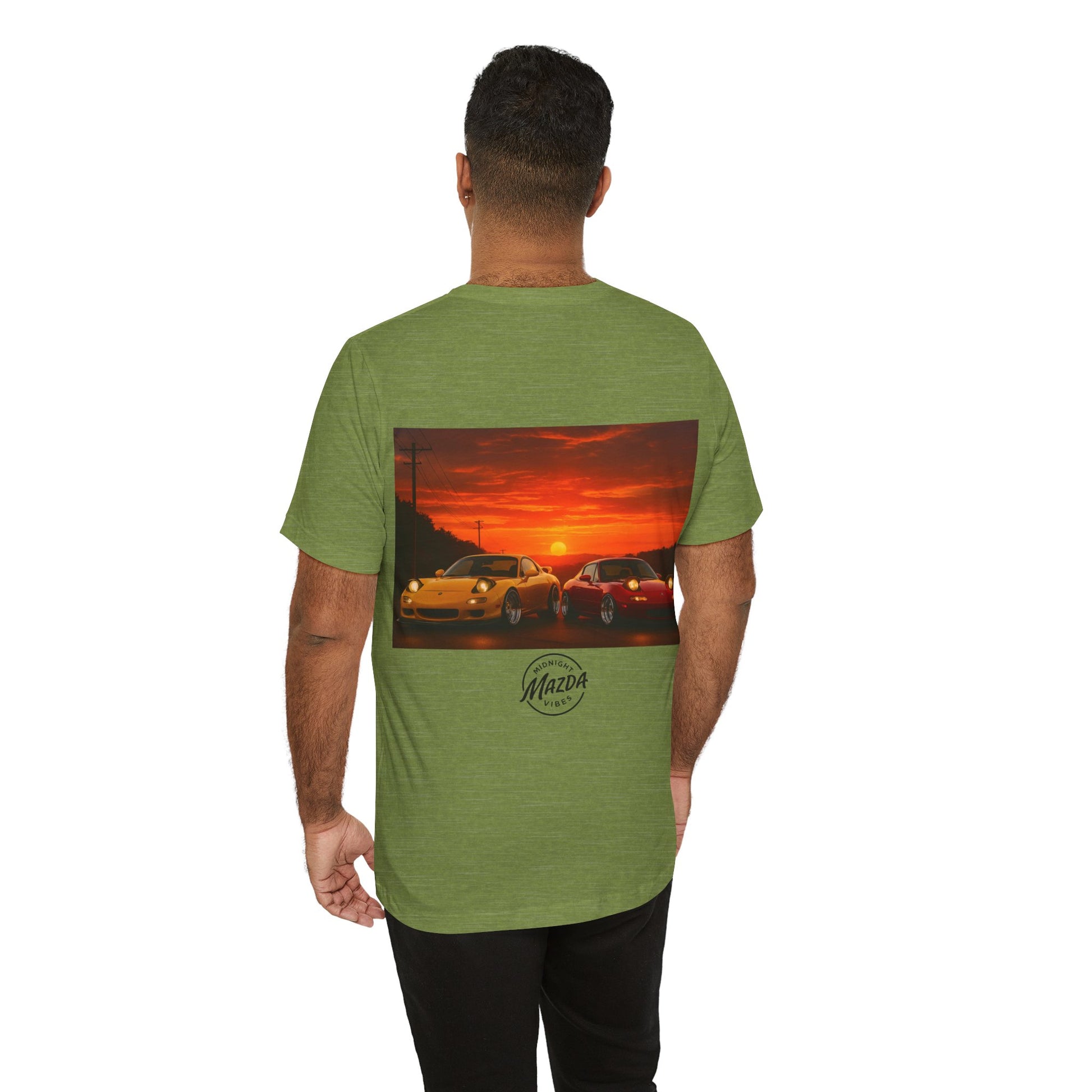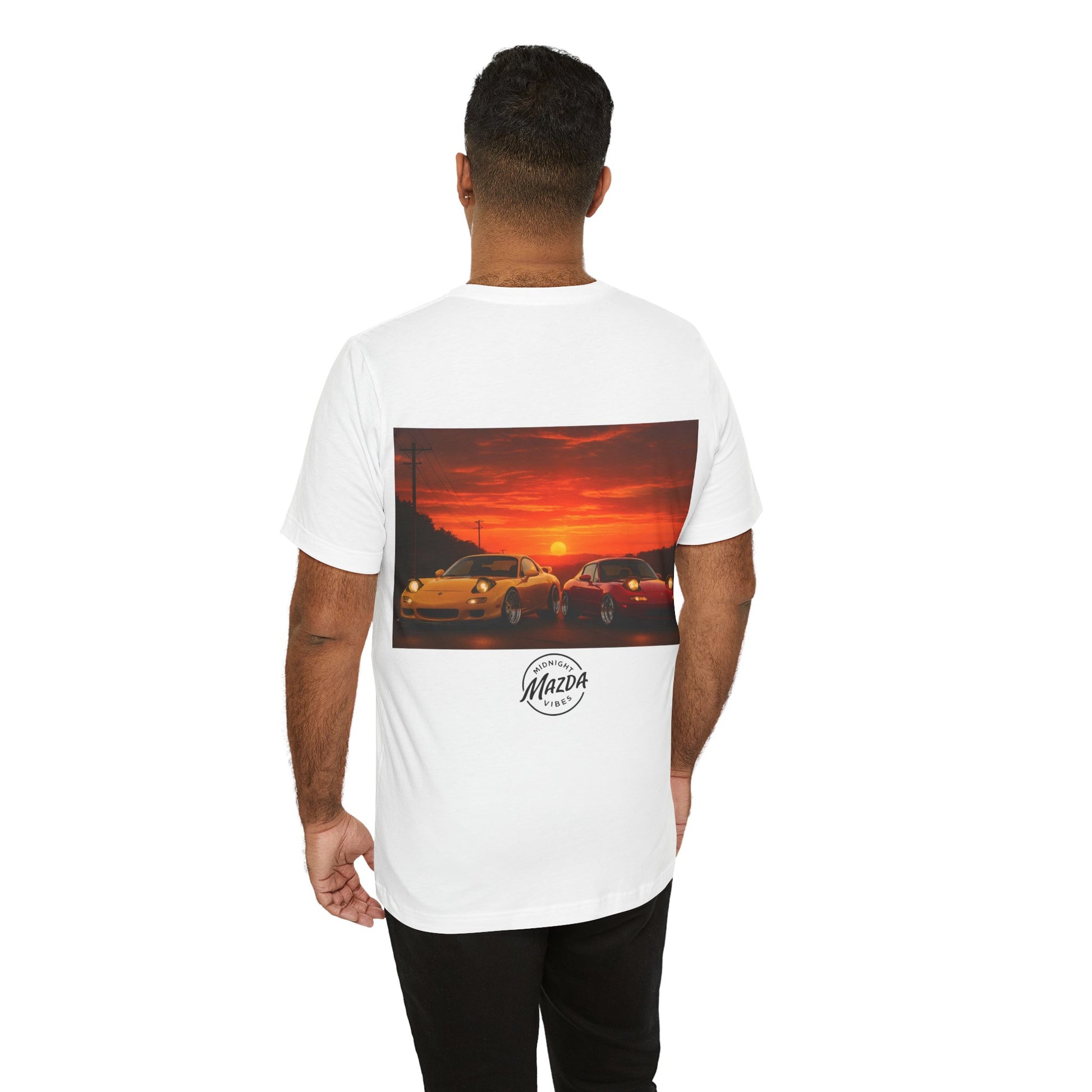 Cruise into golden hour with the Sunset Views Tee — a tribute to classic Japanese car culture and those unforgettable evenings when the sky sets the road on fire. Featuring a vibrant print of two iconic rides, the RX-7 and Miata, parked under a dreamy sunset, this shirt is all about freedom, nostalgia, and style.
